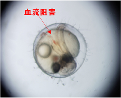 ダイオキシンなどの環境汚染化学物質による影響は、水中に生息するメダカにより大きく現れます。ダイオキシンやビスフェノールAの 投与によって、メダカの初期胚では血流阻害などの発生異常が誘発されます。また、メダカのダイオキシンレセプターが4つあり、毒性の 異なるダイオキシン分子によって、異なって発現誘導されることを見出しました。