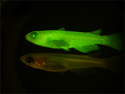 遺伝子組換えによって、熱ショックによって蛍光タンパク質が発現するように遺伝子操作