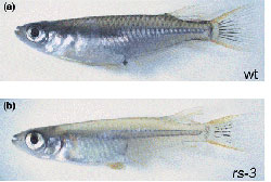 ;野生型)。劣性の自然突然変異体であるrs-3メダカ(図