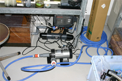 上右の写真は、メダカの集合水槽に設置した騒音除去装置です。